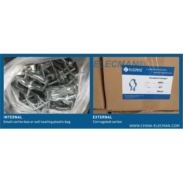 ELECMAN provides full size universal steel EMT Rigid conduit hangers with attached bolt & nut.