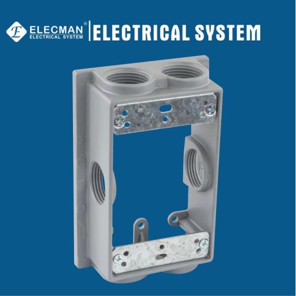 ELECMAN® Aluminum 1 - Gang weatherproof electrical box extension rings with 6 outlet holes are designed for use in branch circuit wiring in wet, damp or dry locations. Extension rings house receptacles, switches and GFCI's. Extension rings mounted on boxes may also be used to increase the size of a weatherproof junction box. Closure plugs and installation hardware included.