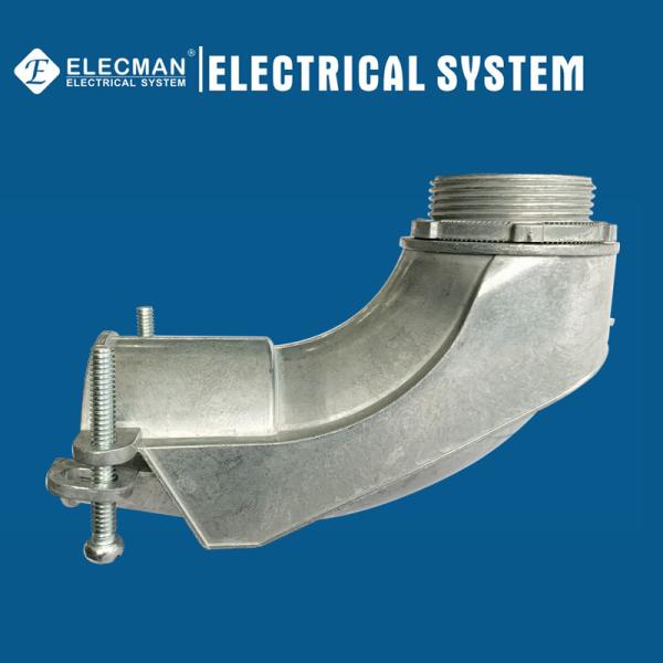 ELECMAN provides full size zinc squeeze connector 90 degree flexible conduit to box type from 1/2" to 4".